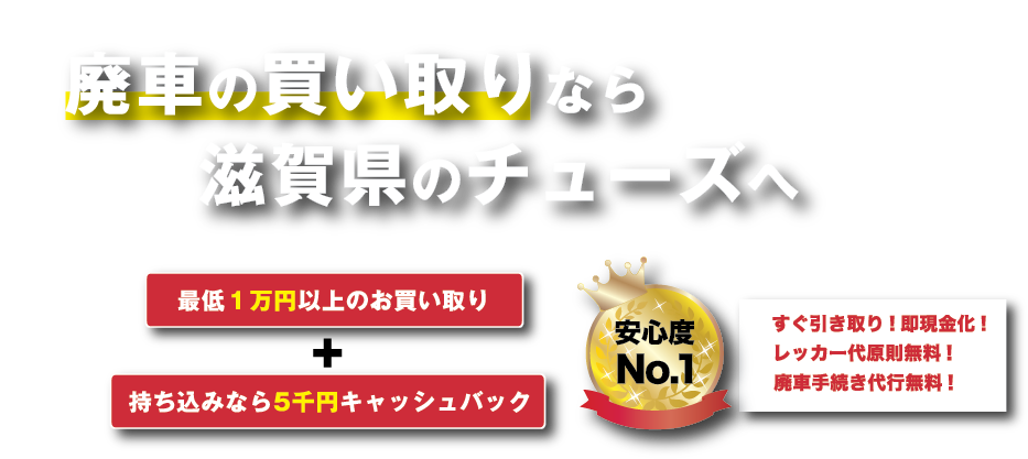 車を野洲市にあるチューズのお店までお持ちいただけたら、
